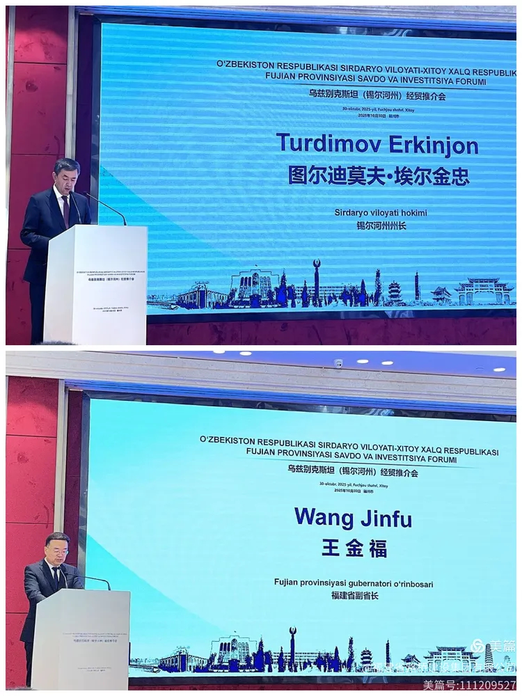 為深化拓展福建與烏茲別克斯坦錫爾河州經(jīng)貿(mào)交流與合作,2025年10月30日,烏茲別克斯斯坦(錫爾河州)經(jīng)貿(mào)推介會在福州成功舉辦。烏茲別克斯坦錫爾河州州長圖爾迪莫夫·埃爾金忠,福建省副省長王金福出席會議并致辭。集團公司副總鄭信貴,二公司副總張華一行參加會議。