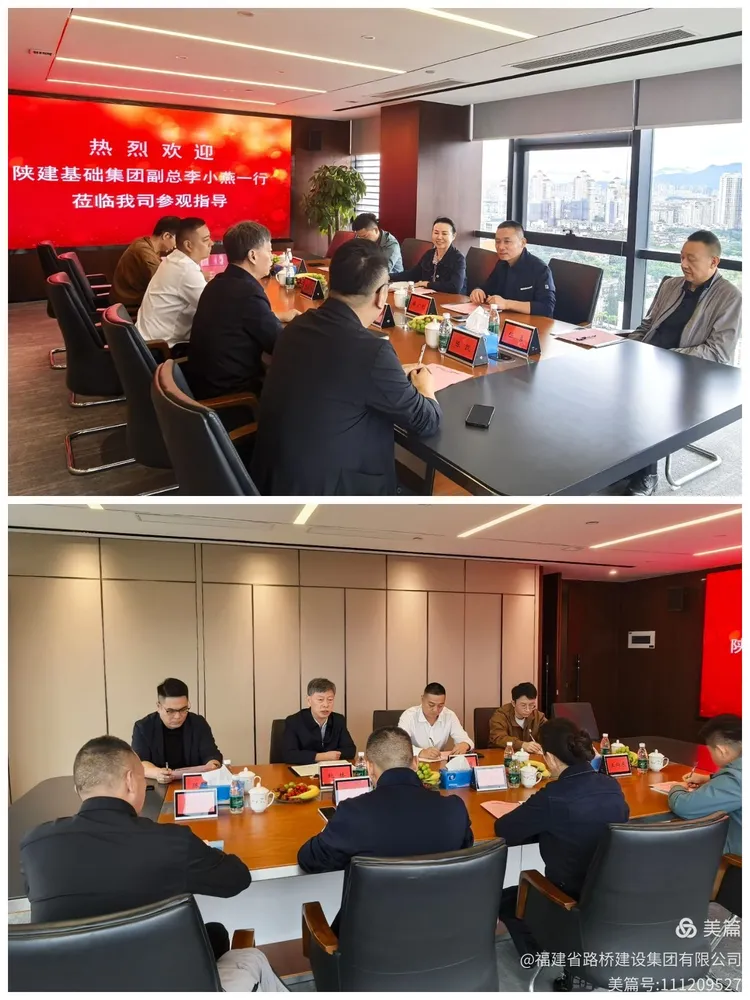 11月13日,陜建基礎集團副總經理李小燕一行蒞臨福建路橋集團參觀指導,集團公司董事長林顯峰、常務副總鮑林出席會議。雙方圍繞項目多樣化合作、技術創(chuàng)新成果共享等議題展開座談并達成合作意向。